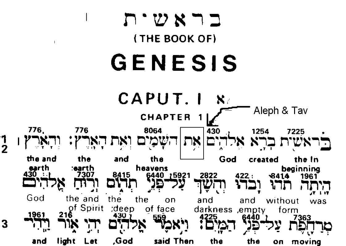 A picture of Genesis 1:1 from the Interlinear in Hebrew and English--Note: Hebrew reads from right to left